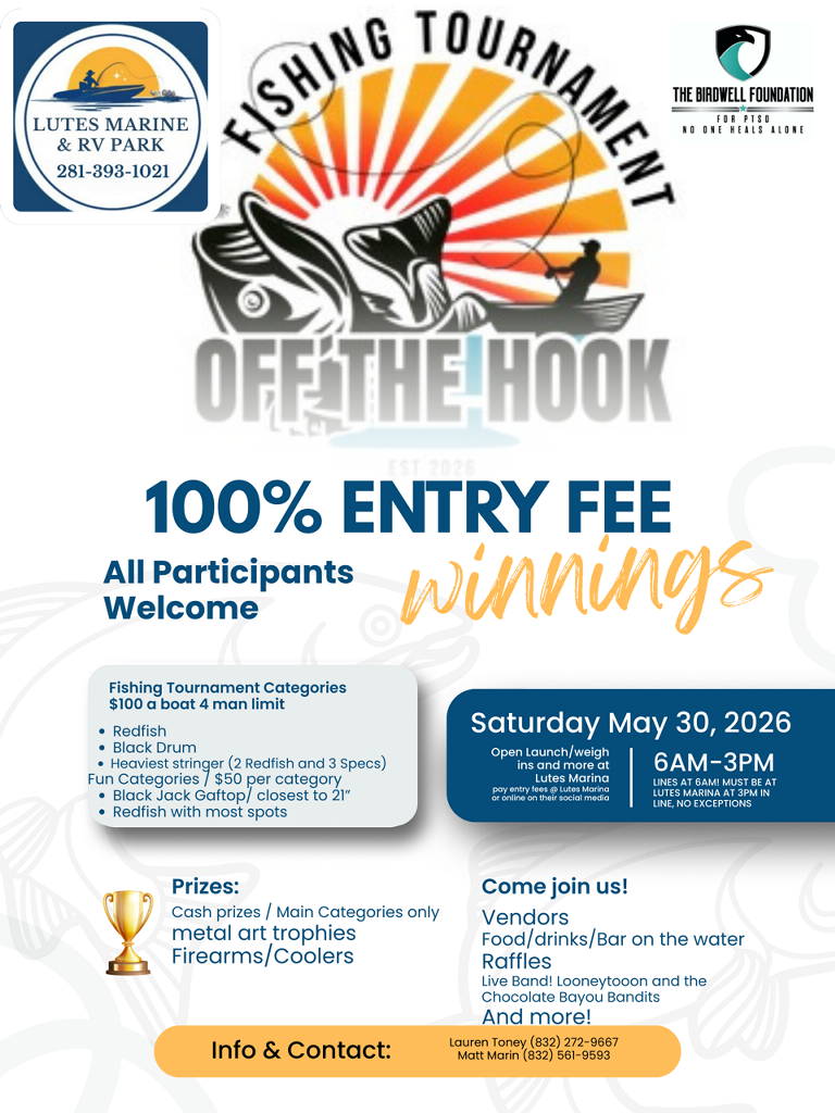 The Off the Hook Fishing Tournament is back and bigger than ever — hosted by Lutes Marine & RV Park and The Birdwell Foundation!